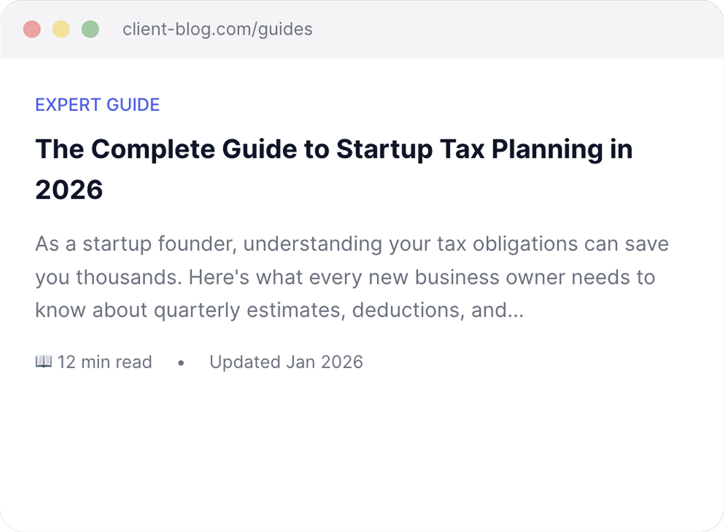 Fresh content goes live every week, signalling to Google and AI that your clients are active authorities.